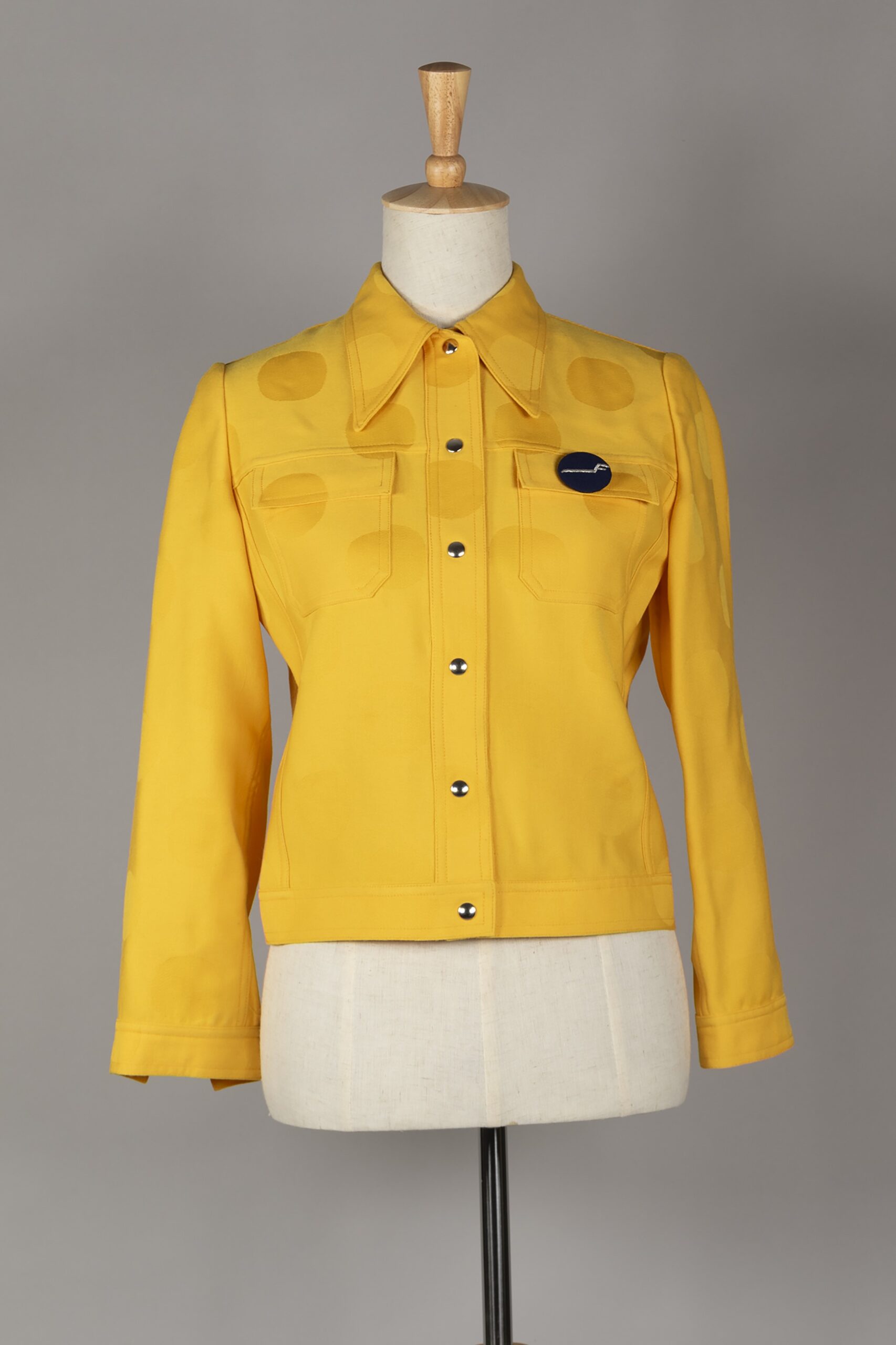 Kirkkaankeltaiset ja lehmuksenvihreät malliltaan varsin tiukat kesävirkapuvut otettiin Finnair Oy:llä käyttöön äitienpäivänä 1973. Villakankaiset puvut valmisti Vuokko Oy. Kokonaisuuden täydensi keltainen lippalakki, jossa pidettiin sinistä pyöreää virkamerkkiä.