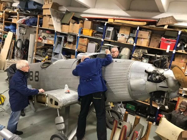 Kuva. Ilmailumuseoyhdistyksen Tiistaikerhon aktiivista toimintaa Ilmailumuseolla.
